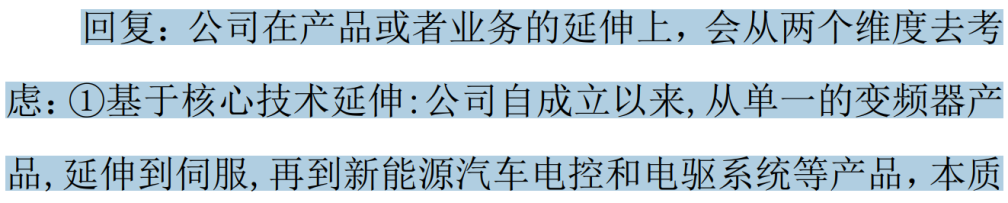 汇川的业务布局非一日建成,它成功地将自身在电力电子、电机驱动方面的核心技术优势,“复制”到这些新兴领域。