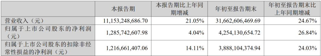 2025年前三季度,公司营收316.6亿元,同比增长25%;归母净利润42.5亿元,同比增长27%。
