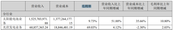 2022年,聆达股份实现营业总收入15.98亿元,同比增长47.9%,增幅连续3年保持在47%以上的高速增长;实现归母净利润亏损1692.8万元,上年同期为亏损7102.9万元,扣非净利润亏损1946.99万元,上年同期亏损9761.22万元。该公司营业收入较上年同期增加47.94%,营业成本较上年同期增加33.87%,主要系报告期太阳能电池业务产销量增加所致;营业收入涨幅大于营业成本涨幅,主要由于太阳能电池片价格上升超过硅片价格上升,致使毛利率升高。