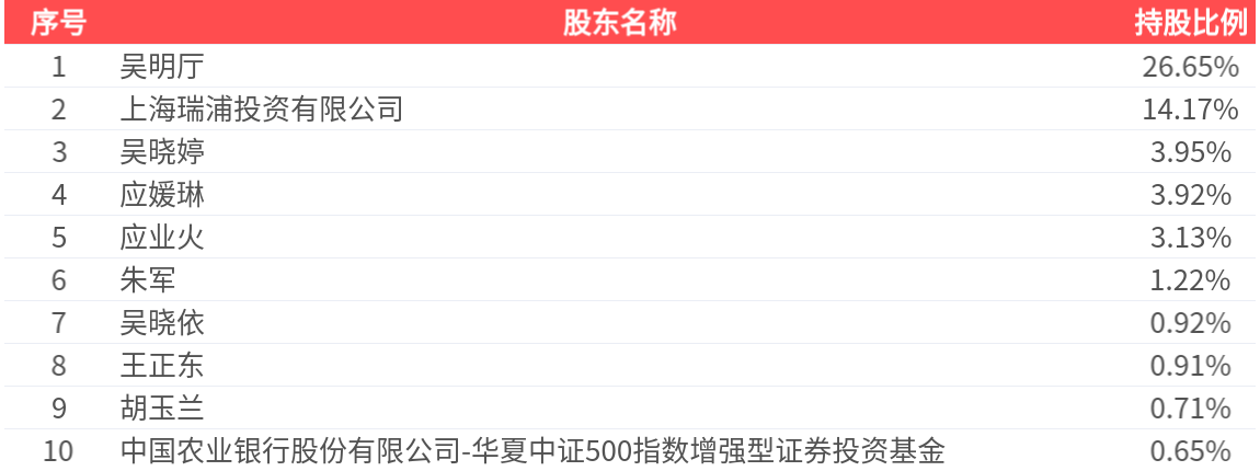 公司股东户数为1.39万户,前十大股东持股数量为1.71亿股,占总股本比例为56.21%,前十大股东持股情况如下: