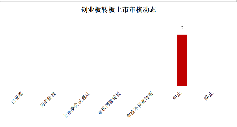 精选层转板上市方面,目前处于中止状态(已过会)2家,合计2家。