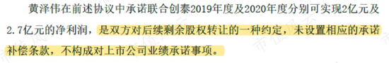 在这第二次交易中,联合创泰的原实控人黄泽伟承诺,联合创泰2019年、2020年的净利润分别为2亿元、2.7亿元。