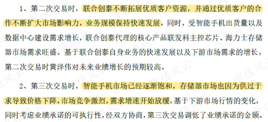 第二次交易时,联合创泰自身业务快速发展,下游市场需求也在增长,但在第三次交易时,市场已经出现饱和,需求增速开始放缓。