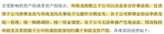 但上市公司坚持表示自己的做法是完全符合规定的:华商龙收购的子公司及业务合作事业部,属于一个整体,各部分无法单独产生现金流,因而华商龙及其收购子公司形成的商誉均归属于华商龙资产组。