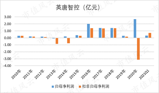 2020年,英唐智控的归母净利润创新高,实现2.69亿元,同比大幅增长了841.50%。