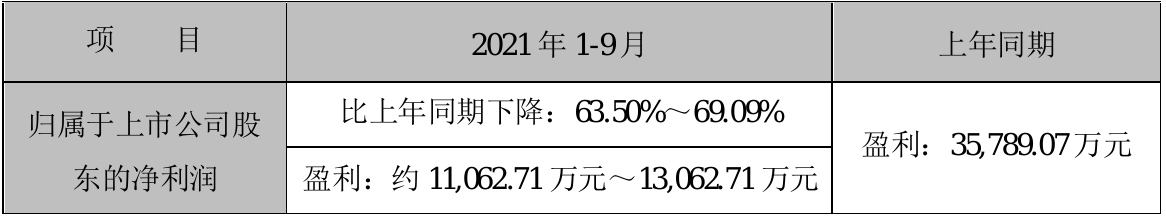 青松股份(300132)近日发布2021年前三季度业绩预告公告,预计2021年前三季度实现归属于上市公司股东的净利润为11062.71万元–13062.71万元,比上年同期减少63.50%–69.09%。