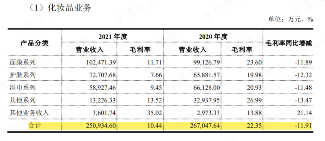 换句话说,承诺期刚过,因为以上各种原因,青松股份的化妆品业务毛利率直接拦腰斩断。