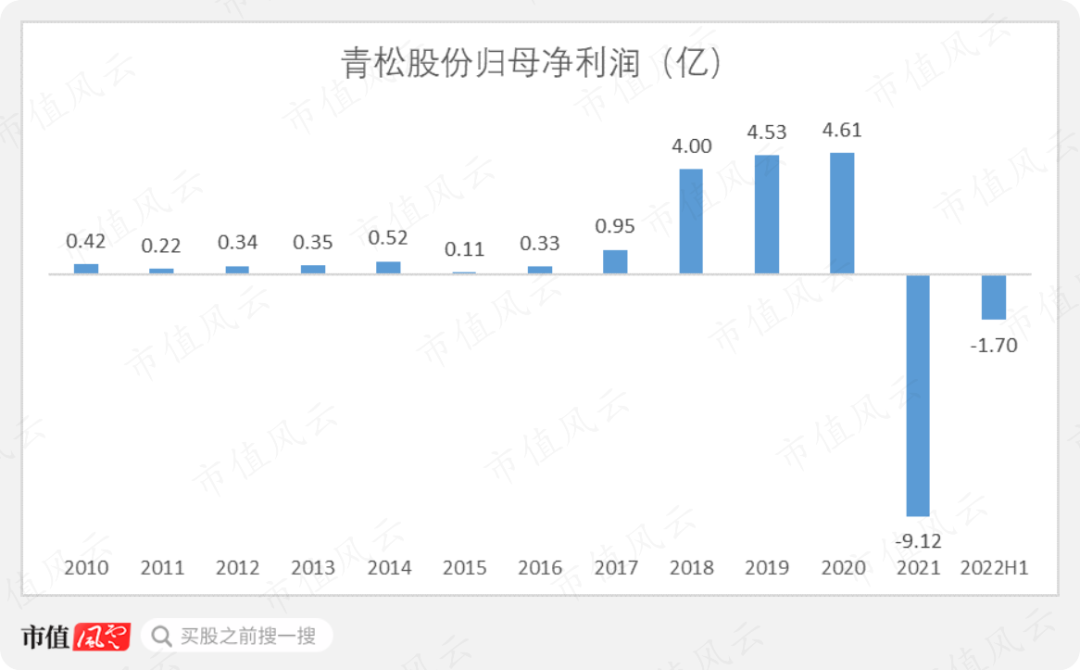 然而,2022年7月29日,青松股份(300132.SZ)交出了上半年预亏1.3亿-1.7亿的业绩预告。这也将是公司自2010年上市以来,业绩最差的半年报。