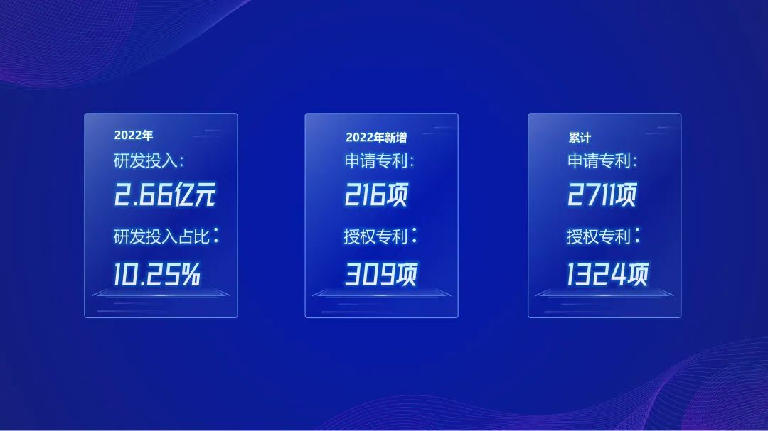 截至2022年12月31日,公司累计已申请专利2,711件,其中发明专利1,193件、实用新型1,248件、外观设计77件、PCT申请193件;已申请著作权登记83件,其中作品著作权1件、软件著作权82件;累计已获得授权专利1324件,其中发明279件、实用新型982件、外观设计63件。