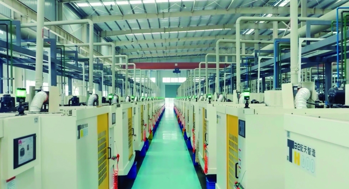 没有气味、相对安静的空间环境让记者感到惊讶。数月前,在大富科技深圳的老旧工厂里,都是隆隆作响的机床以及味道浓重的车间。彼时,大富科技总经理肖竞邀请记者去参观蚌埠的数字化工厂。如今伴随着工作人员的介绍,数字化工厂的神秘“面纱”被缓缓揭开。
