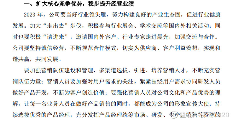 一,是公司意识到要加强行业龙头的话语权,重点加强营销队伍建设,这是2023工作计划的第一重点,营销这块确实是公司目前可以说是唯一的短板