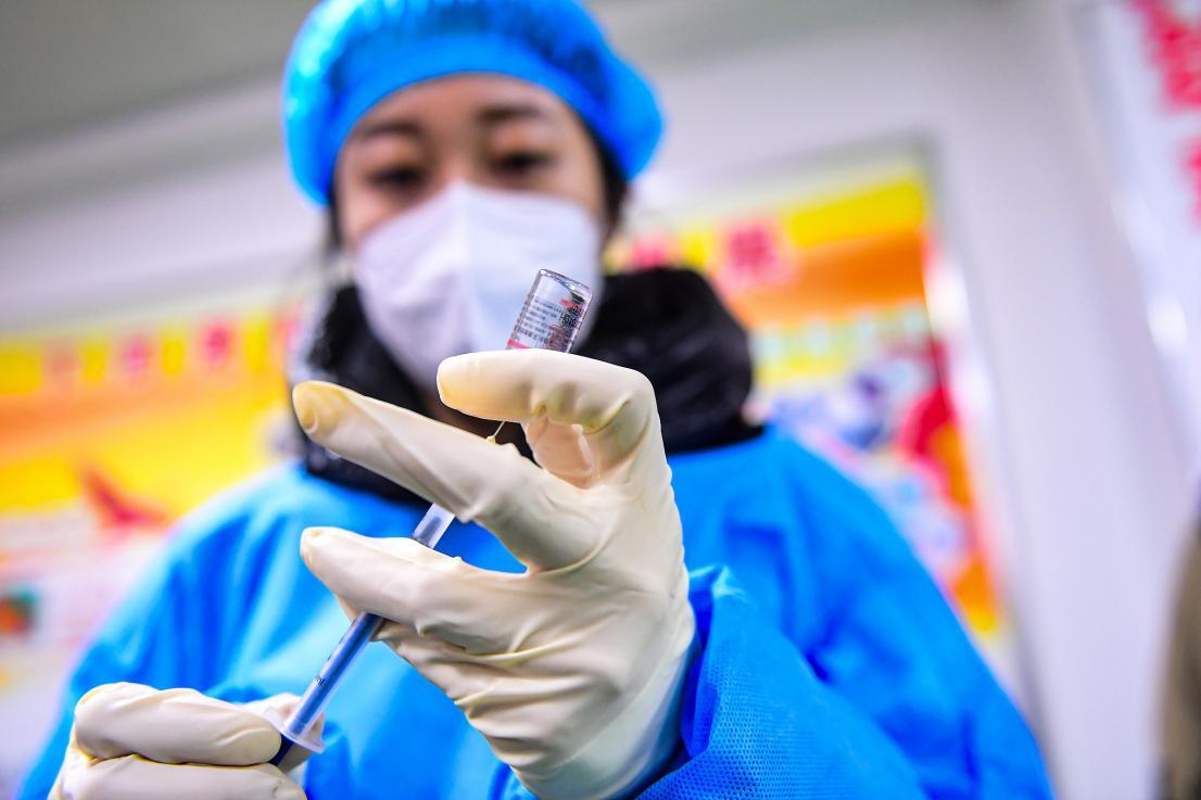 2022年12月27日,在沈阳一处村庄,医护人员在做疫苗接种前的准备工作。(人民视觉/图)