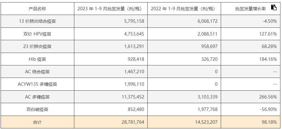 2023年上半年,沃泽慧批签发量475万支,较上年同期增长127.61%。2022年全年共批签发498支。虽然销量同比增加,但是总量与智飞生物和万泰生物千万支相距甚大。