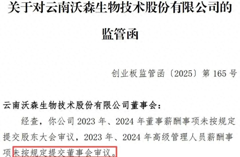 不久前,沃森生物刚被监管层点名。原因是,2023年、2024年,该公司的董事、高级管理人员薪酬事项,都未按规定提交股东大会、董事会审议。