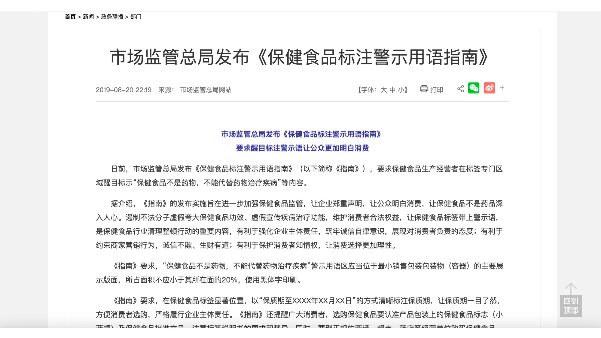 市场监管总局发布的《保健食品标注警示用语指南》