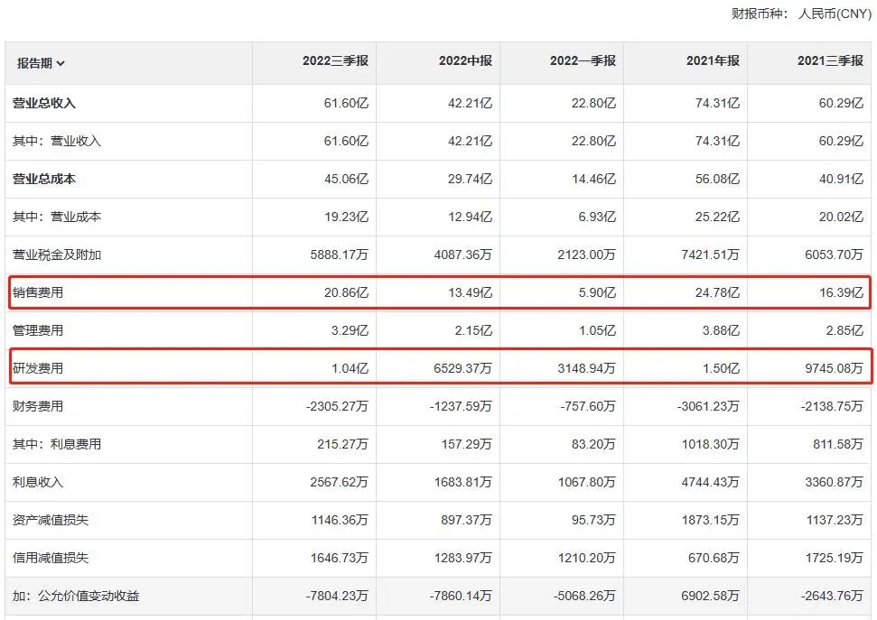 以2021年为例,销售费用支出达24.78亿元,占总收入33.35%。即每卖出100元产品,就有33元用于销售推广。