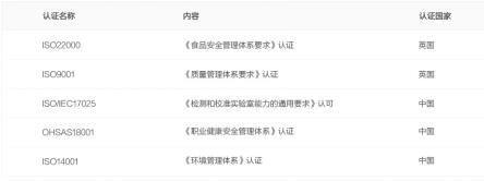 22000:2005《食品安全管理体系要求》认证。汤臣倍健所出具证书或相关报告在CNAS签署互认协议的国家或地区
