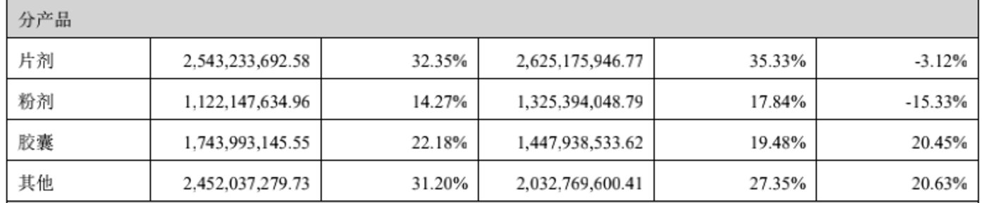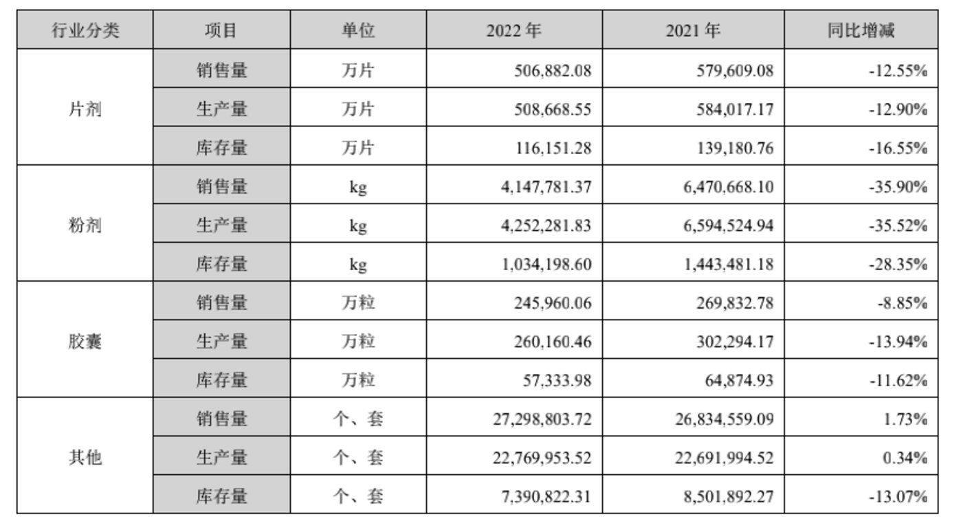 结合主要产品的销售情况来看,成本下降的主要原因在于汤臣倍健的产品卖不动了。2022年,汤臣倍健的片剂销售量同比下降12.55%,粉剂销售量同比下降35.90%,胶囊销售量同比下降8.85%。