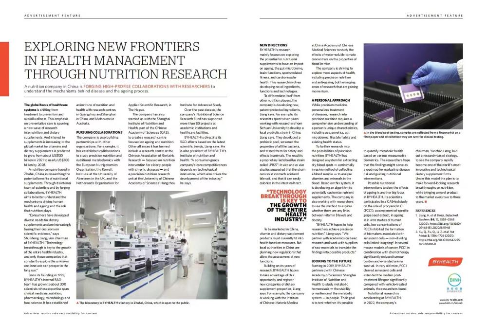在科学营养战略之下,近几年汤臣倍健取得不少成果。今年6月,国际权威科学杂志《Nature》推出中国营养研究增刊,就汤臣倍健天然抗衰物质筛选与机制研究重大成果PCC1、具有自主知识产权的专利益生菌菌株LPB27、个性化定制维生素概念产品等多个前沿研究成果进行了深入报道。