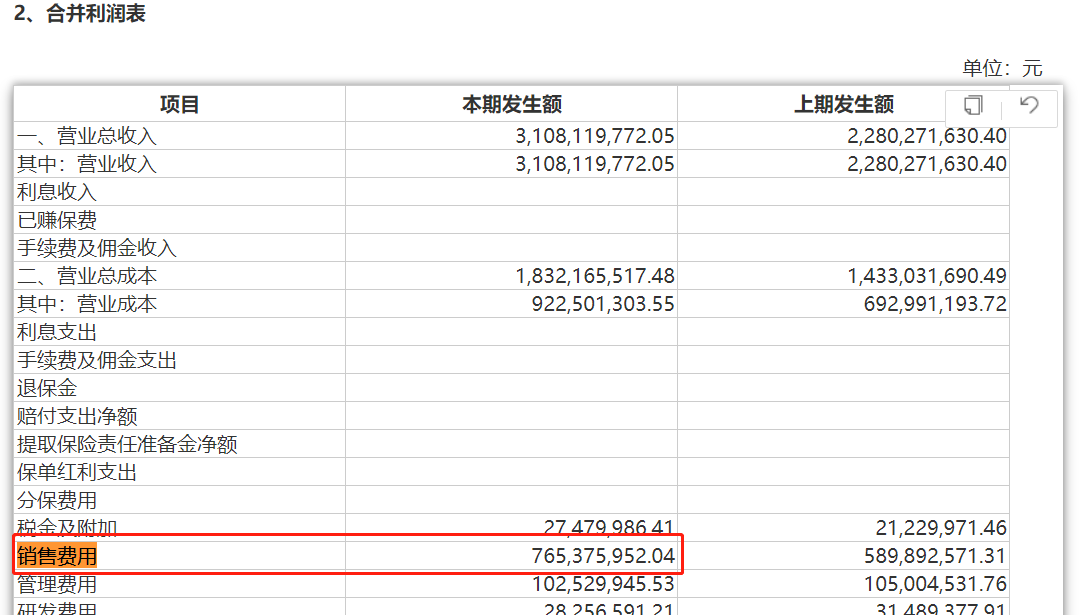 企业并未在一季报中详细披露销售费用的具体数额,但若按照一二季度各自的销售费用比例41.8%、58.2%划分,一季度用于广告、平台、推广的费用是6.22亿元、二季度是8.67亿元。