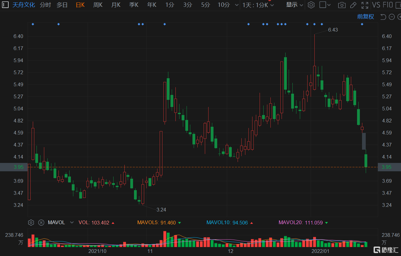 天舟文化(300148.SZ)再度跌超16%,4日连跌30%,报3.94元创近3个月新低,目前成交4.17亿元远超昨日成交额,总市值33.3亿元。