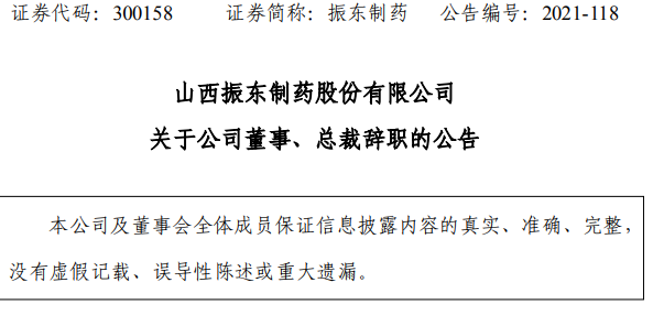 近日,山西振东制药股份有限公司发布了一则关于公司董事、总裁辞职的公告。