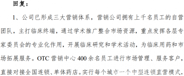 在此前的几次答复中,振东制药解答了销售费用高企的原因。