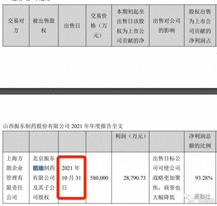 截至2021年10月股权出售时,朗迪制药仍为振东制药贡献2.88亿元净利润;出售股权形成利润约为24.34亿元。这笔买卖也使振东制药业绩创下新高,2021年实现净利润26.17亿元,同比增长898.92%。