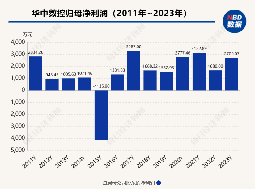 因此,华中数控2023年的扣非后归母净利润亏损7901.60万元。拉长时间线来看,华中数控仅在上市当年的2011年录得过扣非后归母净利润盈利。