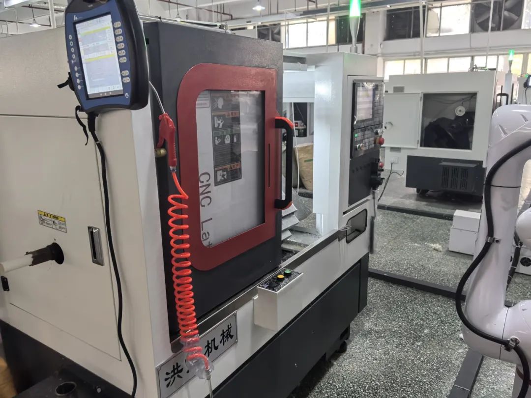 为了提高市场竞争力,铵泽轴承组建起由配套华中数控系统的百余台洪南机械HN-0640斜床身车床和20台华数HSR-CR610协作机器人构成的柔性产线。