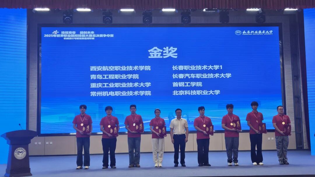 8月28日至29日,在长春举行的2025年世界职业院校技能大赛总决赛机械设计与制造赛道(高职组)中,由华中数控提供技术支持的重庆工业职业技术大学代表队再创佳绩,该校机械工程学院张学兵、蔡塬焕、周光正、何川4位同学组成的参赛团队,凭借出色的综合能力与技术水平,在激烈的竞争中脱颖而出,以绝对优势荣获平行组金奖,并以第一名的优异成绩成功晋级排位赛!