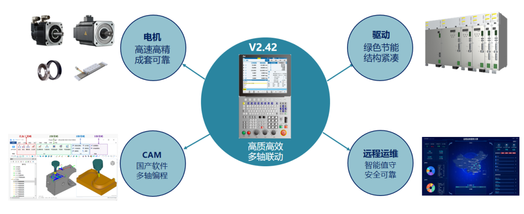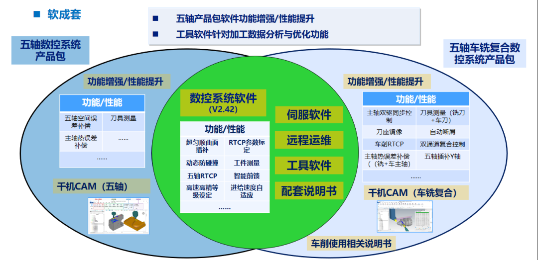 软成套以V2.42版本数控系统软件为核心,融合伺服软件、工具软件与远程运维功能,打造全流程智能化加工体验。
