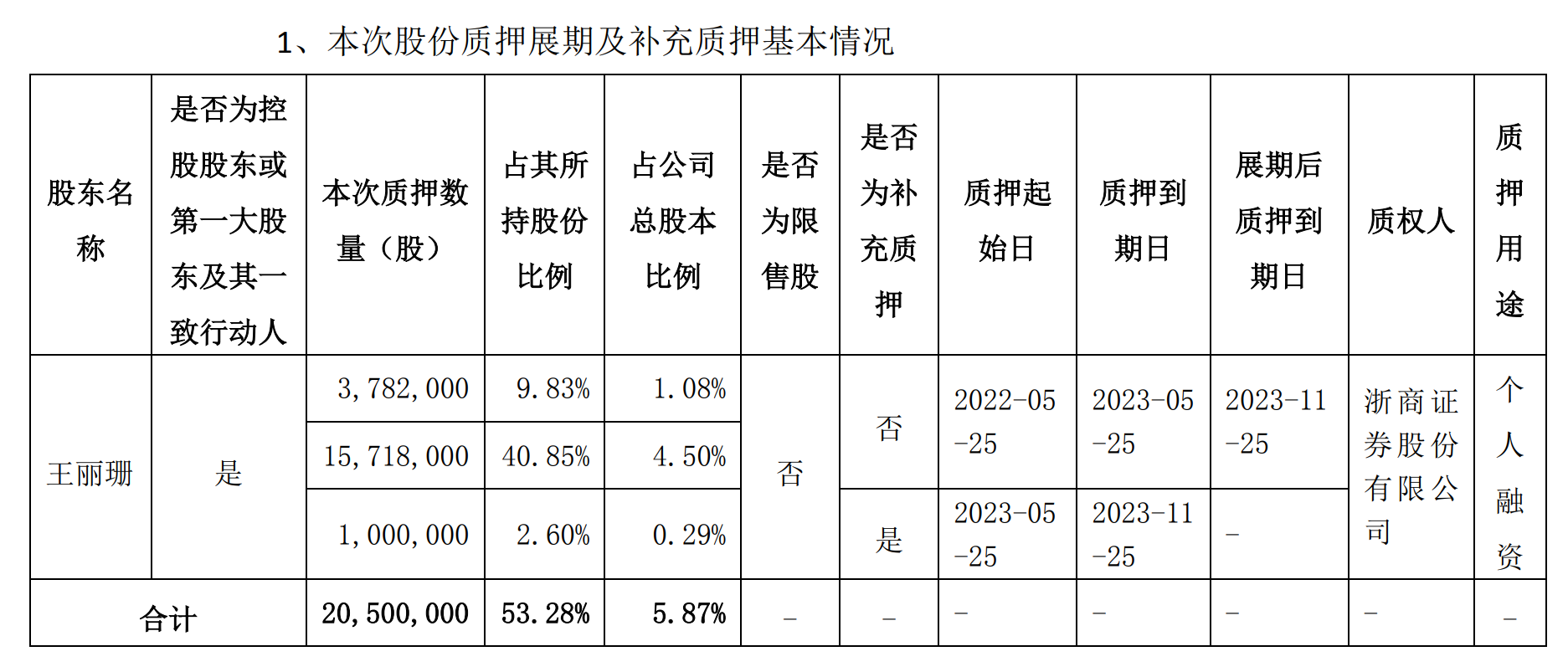 公告显示,雷曼光电接到公司控股股东之王丽珊的函告,获悉上述股东近日对其股票质押办了延期购回及补充质押手续。本次股份质押展期及补充质押共计2050万股,占雷曼光电总股本比例为5.87%。