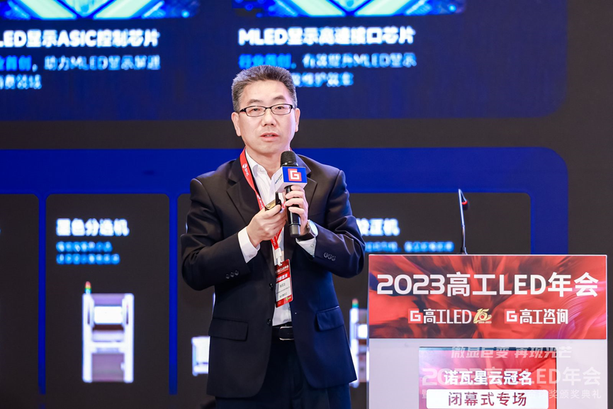 12月7日下午-12月8日,由高工LED、高工产业研究院(GGII)主办,东山精密总冠名的以“微显巨变,再现光芒”为主题的2023高工LED年会暨十五周年庆典在深圳机场凯悦酒店盛大举行。12月8日下午,在由诺瓦星云冠名的闭幕式专场上,屠孟龙发表了《PM驱动玻璃基Micro LED显示技术进展》的主题演讲,分享了雷曼光电在Micro LED领域的新进展。