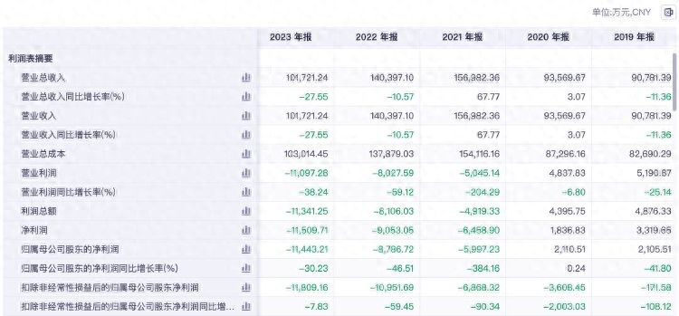 业绩方面,iFind数据显示,公司归母净利润已于2021年至2023年连续三年亏损,且亏损幅度逐渐扩大,扣非净利润更是连续五年为负。