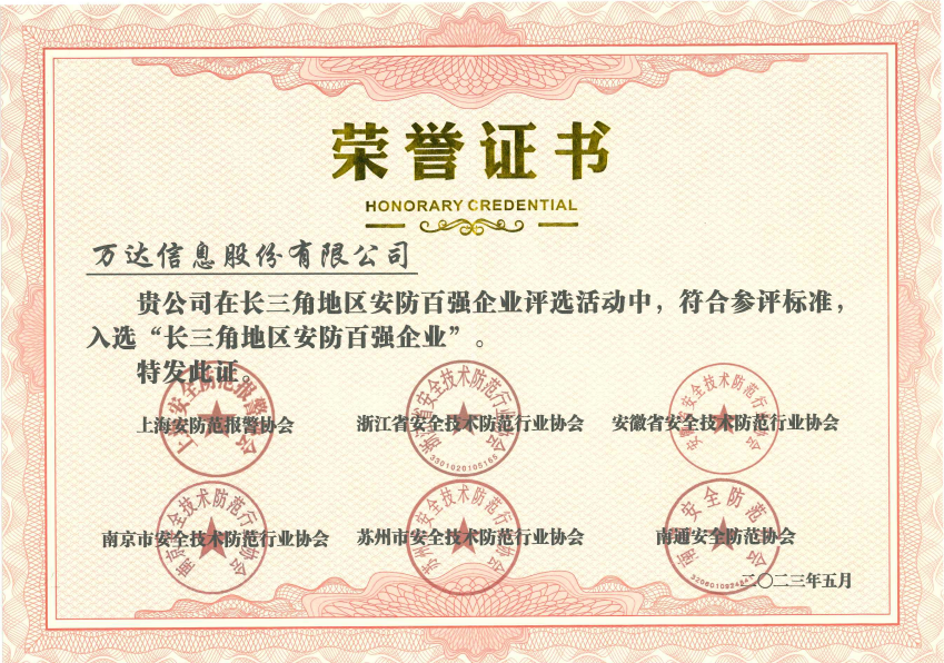 “长三角地区安防百强企业”。