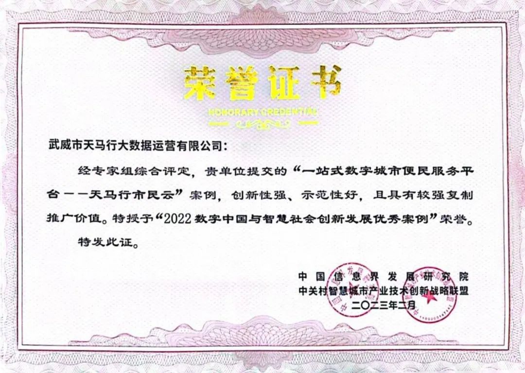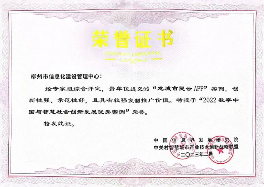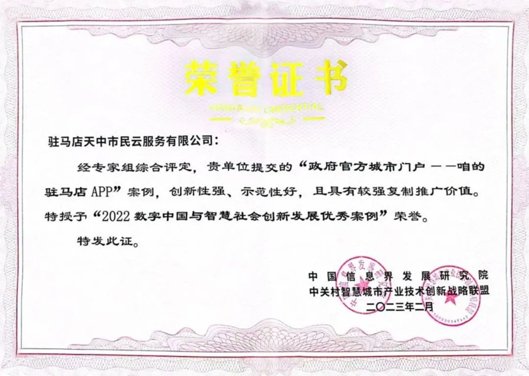 除现场颁发的两个奖项外,由万达信息市民云打造的“龙城市民云”“咱的驻马店”和“天马行市民云”平台凭借在当地城市数字化转型中的突出表现和良好的示范效应,在本次评选中荣获“2022数字中国与智慧社会创新发展优秀案例”奖项。