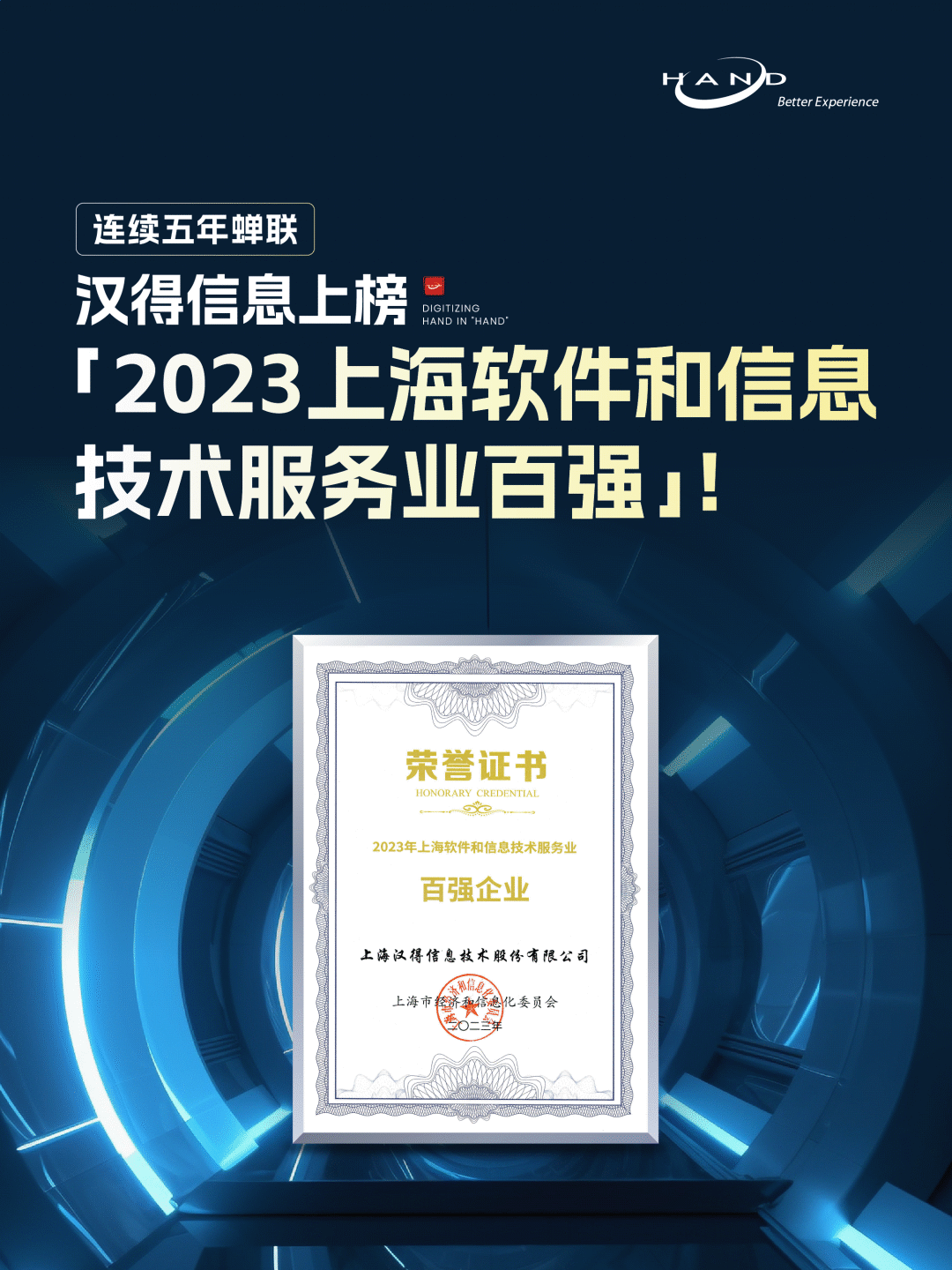 近日,上海市经济和信息化委员会正式公布“2023上海软件和信息技术服务业百强”名单(以下简称“百强”)。汉得信息凭借行业领先的市场服务规模、持续提升的核心竞争力和增长速度等突出表现,连续五年蝉联“百强”企业称号。