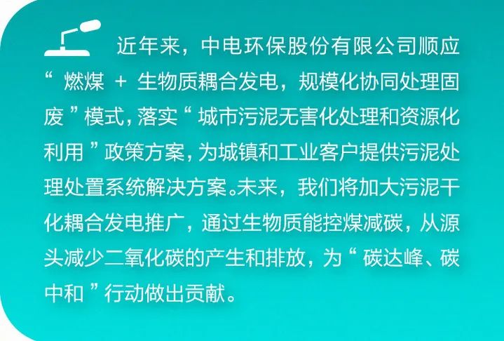 未来,中电环保将加大污泥干化耦合发电技术的推广,通过生物质能控煤减碳,从源头减少二氧化碳的产生和排放,持续为“碳达峰、碳中和”行动做出贡献。