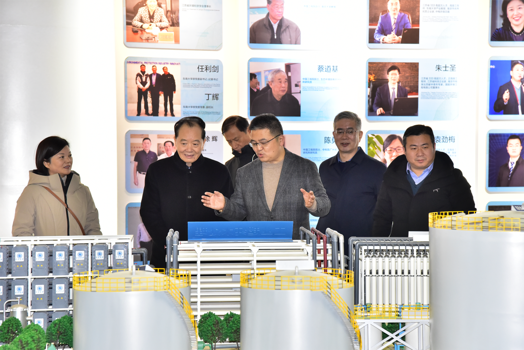 刘主席一行首先参观了由中电环保牵头打造的环保产业创新平台,张伟总从平台建设、科技创新、特色业务、对外合作等方面进行详实介绍。中电环保作为南京环保产业的龙头企业(国家专精特新“小巨人”企业、南京首家环保上市公司、南京环保产业协会会长单位),联合省环境厅、南京大学、东南大学等“政产学研金才”资源,打造环保产业创新平台。