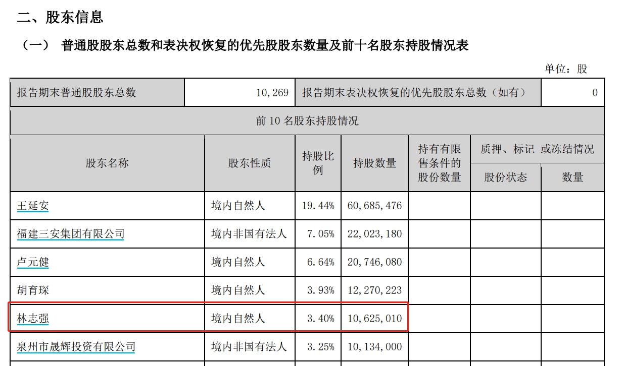 2022年第三季度报告显示,林志强为元力股份第五大股东,持股占比为3.40%。