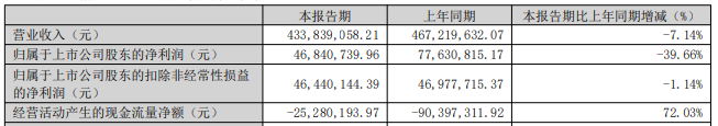 2025年第一季度,元力股份营业收入为4.34亿元,同比下降7.14%;归属于上市公司股东的净利润0.47亿元,同比下降39.66%;归属于上市公司股东的扣除非经常性损益的净利润0.46亿元,同比下降1.14%;经营活动产生的现金流量净额-0.25亿元,上年同期为-0.90亿元。
