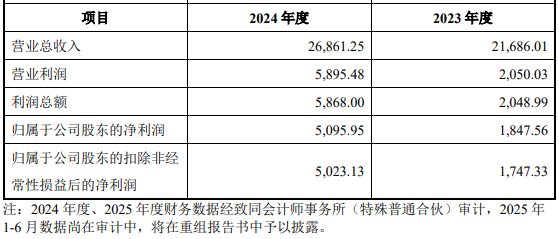2023年、2024年,同晟股份营业总收入分别为21,686.01万元、26,861.25万元,归属于公司股东的净利润分别为1,847.56万元、5,095.95万元,归属于公司股东的扣除非经常性损益后的净利润分别为1,747.33万元、5,023.13万元。