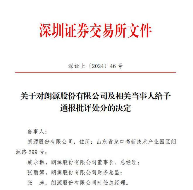 朗源股份及董事长戚永楙等3人17日被深交所通报批评。