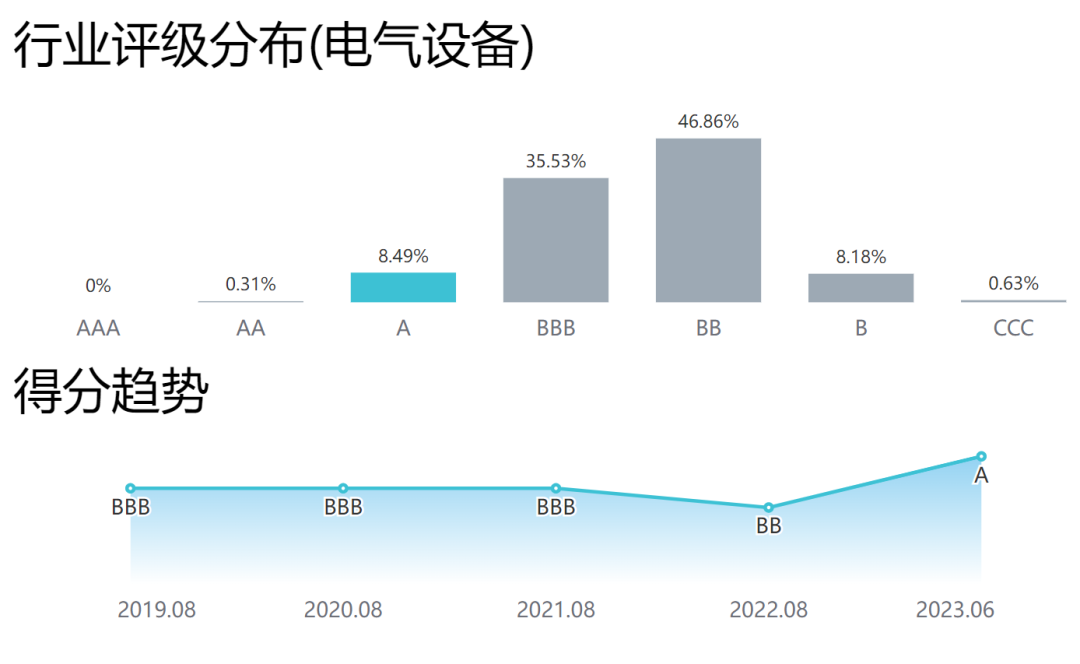 天能重工评级排名大幅跃升,由行业中游BB评级提升两级至A评级。