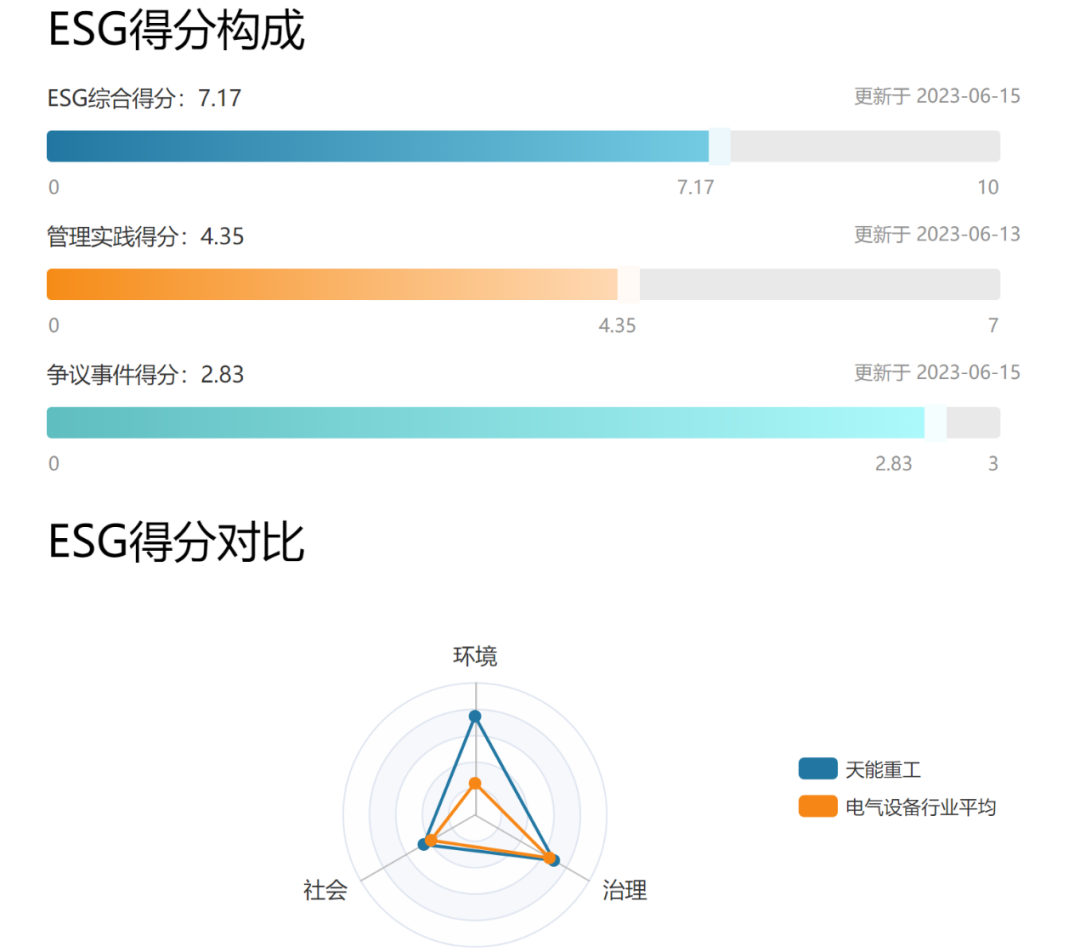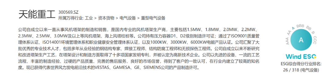 2023年6月,国内权威ESG评级机构万得(Wind)发布最新ESG评级榜单,珠海港集团旗下上市公司通裕重工、天能重工双双调增为行业A级评级,并均位于行业前列。其中,通裕重工综合得分在512家工业机械公司中排名第33,天能重工综合得分在318家电气设备同行业公司排名第26。