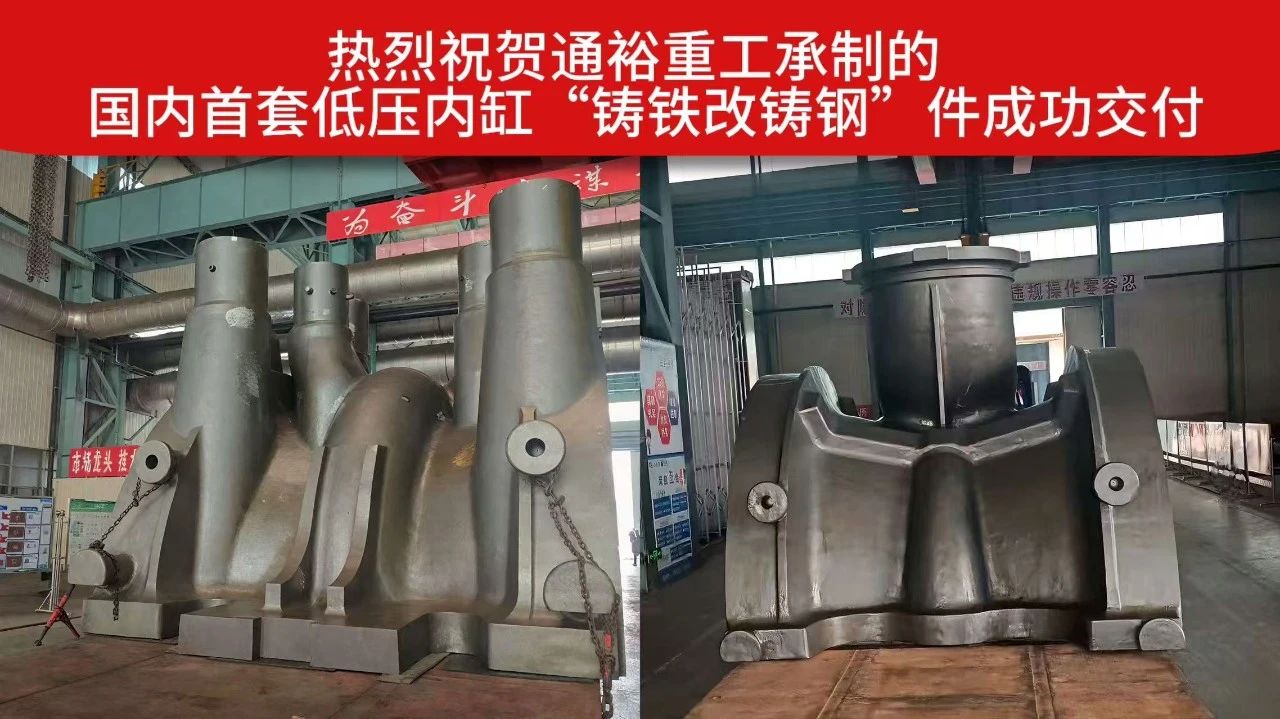 近日,通裕重工成功交付国内首套“铸铁改铸钢”低压内缸,标志着公司在大型高端铸钢件制造领域取得重大突破。该产品凭借突破性的制造效率与卓越质量,在极短周期内实现交付,树立了大型高端铸钢件领域的新标杆。