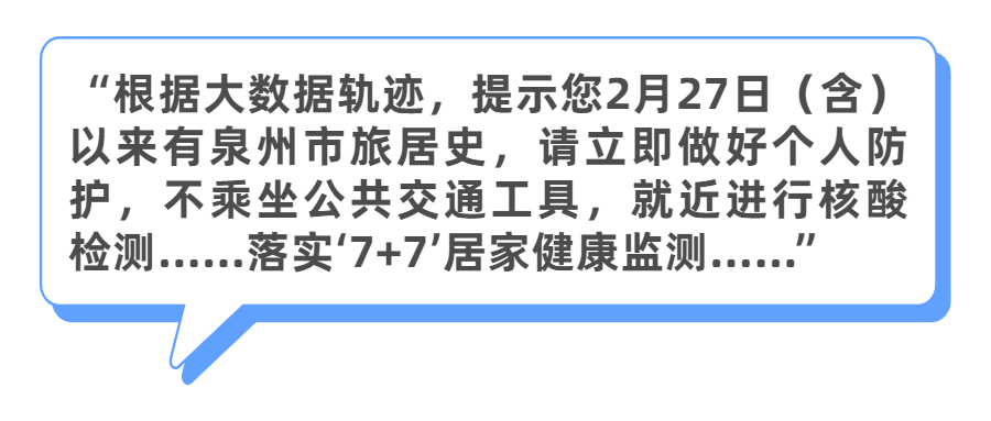 泉州疫情发生后,不少厦门市民收到?“泉州入厦人员须知”的健康提醒短信,这便是大数据平台赋能的结果。通过与通信大数据平台、公安大数据平台的有效对接,能够实现对人口、核酸数据的分析比对等,从而主动提醒泉州方向入厦人员落实防疫政策,让数据跑在疫情扩散前面。