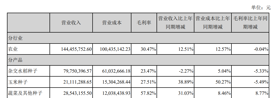 然而,获奖没能拉动公司杂交水稻销售,年报显示,去年杂交水稻种子营收同比减少了2.27%,与前几年相比变化不大,并不好卖。