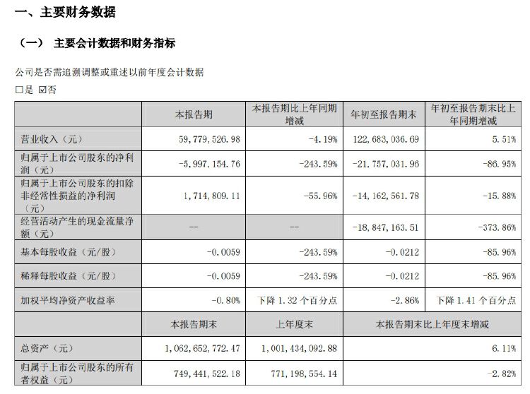 据公司披露的三季报,前三季度,神农种业实现营收1.23亿元,同比增5.51%;实现归属于上市公司股东的净利润(下称净利润)-2175.70万元,同比降86.95%。单看第三季度,公司营收、净利润双降,实现营收5977.95万元,实现净利润-599.71万元,分别同比降4.19%、243.59%。
